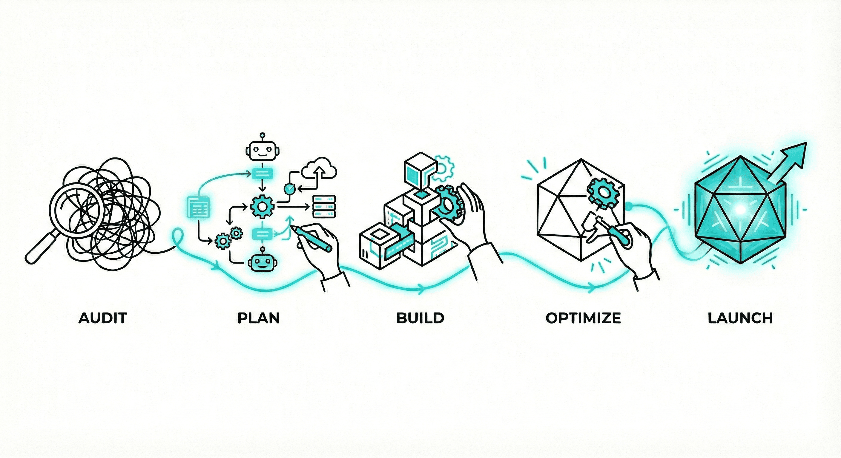 Friction to Flow. We follow a clear, five-step framework to identify where your team is stuck and build intelligent systems to set them free.